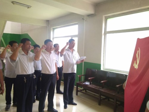 会前,全体党员高举右臂,面向鲜红的党旗,重温了入党誓词。