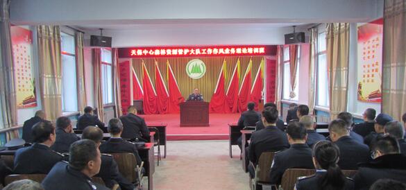 天保中心主任、森林资源管护大队大队长许传东作动员讲话。他结合我局转型发展和推进生态文明建设的新形势、新任务,立足单位工作实际,深入阐述了森林资源管护工作的重要意义。他希望全体干部员工珍惜此次培训机会,要带着问题学习,带着任务思考,带着目标努力,做到学有所获、学以致用。要深入探索推进绿色发展的新思路、新方法,立足岗位、创新有为,树立森林资源管护大队的良好形象。要始终保持认真严谨的工作作风、端正热情的工作态度、高度负责的敬业精神、甘于奉献的思想境界,积极投身于森林资源管护事业当中去,为保护我局森林资源安全做出积极贡献。