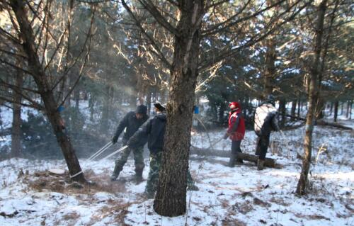 为保证疏伐工作的顺利开展,今年年初,宏伟种子园依据《种子园营建技术规程》和技术人员实地踏查结果,邀请专家指导,反复推敲论证,充分考量如何对遗传增益低的无性系及生长状况不良、病虫害严重的红松进行伐除,确保植株间距、密度的均匀性和花粉传播有效距离,从而保留红松优良无性系,进一步提高遗传增益等因素,最终制定出了科学的疏伐方案,再经设计部门现地设计,标注出应伐木,并严格控制合理的采伐强度。