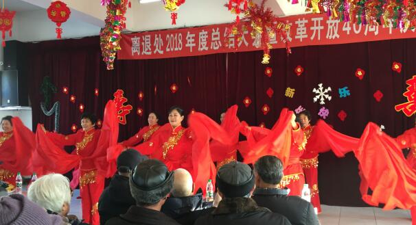 总结表彰大会结束后,以舞蹈《欢乐中国年》拉开了文艺演出的序幕。全体离退休老同志围绕“庆祝改革开放40周年”主题,表演了精彩纷呈的京剧沙家浜选段《智斗》、黄梅戏《夫妻双双把家还》、评剧《慢闪秋波》等节目,充分表达了他们对美好生活的赞美之情,展示了他们积极进取、乐观向上的精神风貌。全处在职干部员工表演了大合唱《夕阳红》《走进新时代》以及诗朗诵《献给离退休老干部们的诗》等文艺节目,得到了老同志的高度赞扬。文艺演出在《吉祥颂》的翩翩舞步和欢愉的乐曲声中落下帷幕。