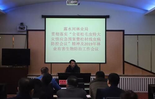森林病虫防治检疫站负责人许延国主持会议,并通报了我局2018年林业有害生物防治工作开展情况,总结了经验,查找了不足,对2019年林业有害生物防治各项工作进行了具体的安排部署。