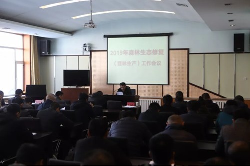 为贯彻落实习近平总书记新时代绿色发展理念,全面提升森林生态修复建设质量,按照集团公司和省林草局的总体部署,4月2日,我局召开了2019年森林生态修复工作会议。全局各单位和机关各处室主要负责人、主管领导和技术员参加会议。