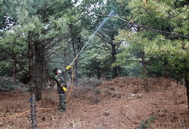 随着气温逐渐升高,各种森林病虫害迅速繁殖。4月16日,宏伟种子园组织防治队伍,在我局红松良种基地开展病虫害防治工作。